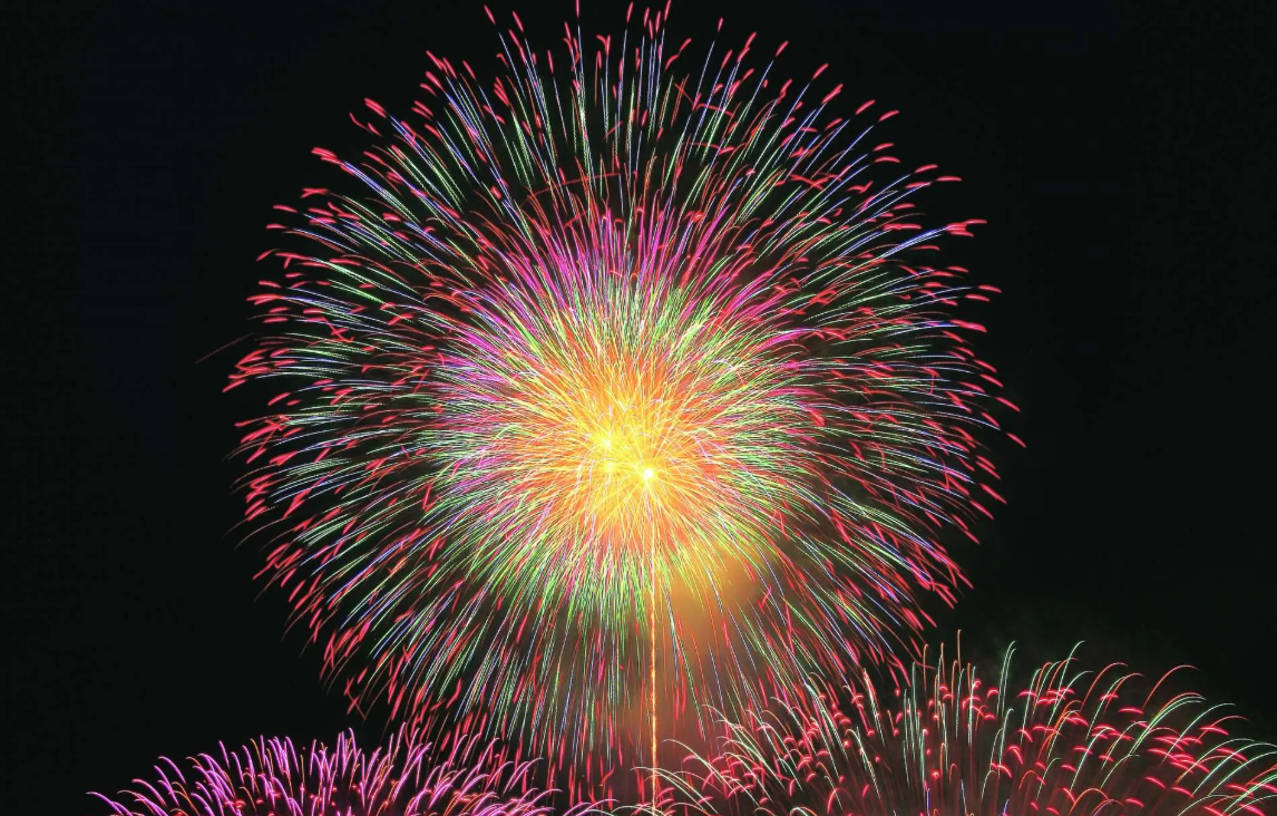 正三尺玉: 巨大煙火「正三尺玉」在夜空中盛開,直徑長達 650 公尺,非常震撼。